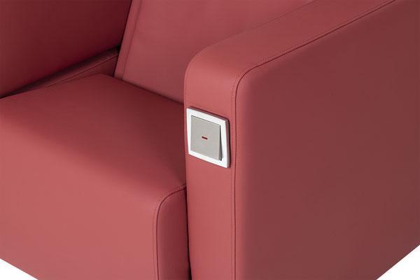 Thanks to a sophisticated access aid, this model offers wheelchair or rollator users a barrier-free option for use. Easy to handle, the specially designed flex armrest can be pushed forwards or backwards with very little effort and thus enables a comfortable and safe transfer. A great help for people who are dependent on a wheelchair, especially since doctors and chiropractors recommend blood circulation-promoting and vitalising massages especially for people with physical impairments.